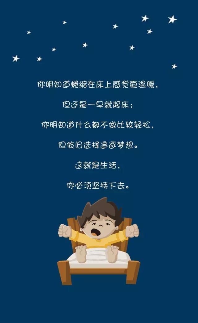 3、起床不是為了應付今天的時間;而是必須做到今天要比昨天活得更精彩!不能后退的時候,不再彷徨的時候,永遠向前路,一直都在。記住一千個人就有一千種生存方式和生活道路,要想改變一些事情,首先得把自己給找回來。就算沒有人為我們鼓掌,也要學會自我欣賞。早安!